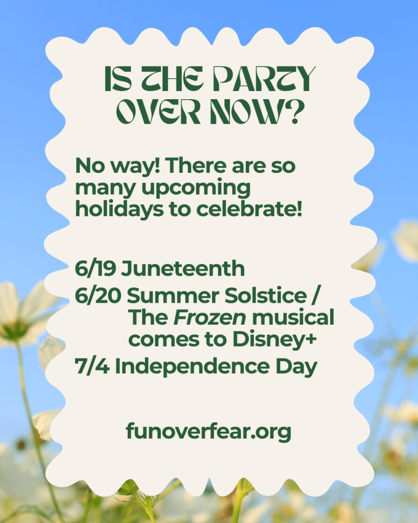 Yes, please! Use hashtags #funoverfear and #partywithhope.